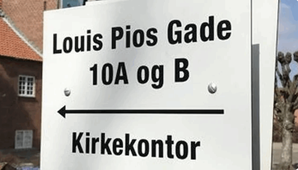 Du finder kirkekontoret omme bag Frederiksholm kirke.